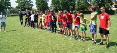 Na oficjalne otwarcie boiska szkolnego zaproszeni zostali goście: pani Monika Klemenska sekretarz gminy Włoszakowice, pan Tadeusz Malepszy sołtys Bukówca Górnego, pani Zofia Dragan dyrektor ZS Bukówiec Górny, pan Ryszard Krawczyk przedstawiciel klubu GKS Włoszakowice oraz pani Halina Ginter współwłaścicielka firmy Dimah. FHU. Ginter W. To właśnie zaproszeni goście uroczyście przecięli wstęgi i otwarli boisko szkolne. Dodatkowo każdy z gości wykonał rzut karny. Było to o tyle trudne zadanie, że miedzy słupkami stał bramkarz reprezentacji Polski Olimpiad Specjalnych – Grzegorz Szkudlarczyk. Naszym gościom jednak udało się kilka razy trafić do bramki.