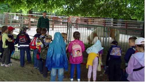 Ostatnim punktem naszej wycieczki było Mini Zoo. Po parku oprowadzał nas pracownik Miejskiego Zakładu Zieleni. W ciekawy sposób opowiadał o mieszkających tam zwierzętach. Zobaczyliśmy między innymi: pawie, owce, kozy, świnie, szopa pracza, osła, konie, małpy makaki i żubry. Bogatsi o nowe doświadczenia i pełni wrażeń wróciliśmy do Bukówca Górnego.