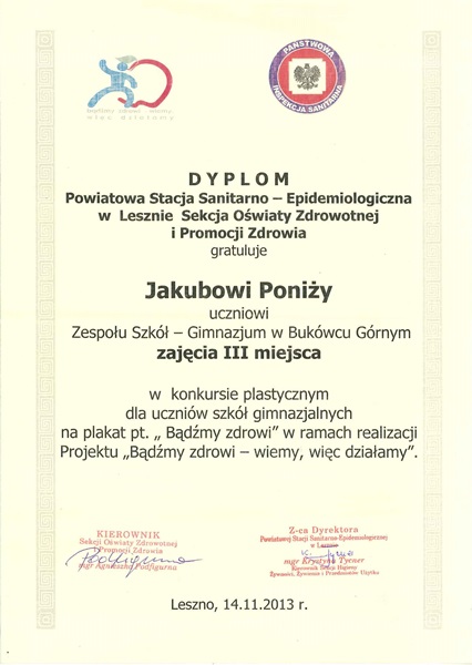 Bukówiecka szkoła nie po raz pierwszy odniosła sukces w konkursie organizowanym przez leszczyński SANEPiD. Są to nie tylko konkursy plastyczne, również literackie czy fotograficzne.