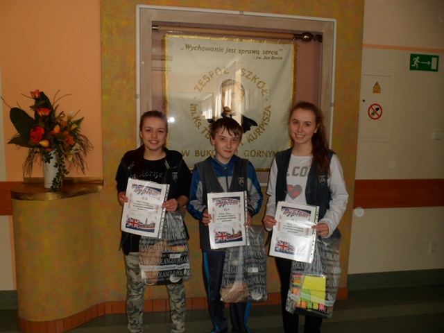 Laureaci konkursu otrzymali dyplomy i nagrody rzeczowe a wszyscy uczestnicy nagrody w postaci ocen celujących z J. angielskiego.