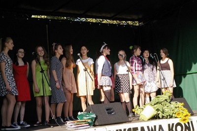 Około godziny 15 zaprezentowały się chórzystki ze szkolnego chóru, laureaci konkursu „Mówimy gwarą” oraz dziewczynki z klas II-IV, fenomenalnie recytujące wiersze. Wcześniej, na otwarciu Jarmarku Rolniczego, na sali wiejskiej wystąpił Szkolny Zespół Regionalny i Kapela Miglance.