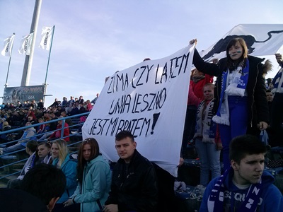 Był to mecz inauguracyjny, dlatego na stadionie zjawiły się tłumy kibiców spragnionych niecodziennych wrażeń. Przed wejściem na stadion każdy uczestnik akcji otrzymał darmowy bilet zaproszenie. Nasi gimnazjaliści, jak na prawdziwych kibiców przystało, zaopatrzyli się w szaliki, flagi, tuby, werbel, własnoręcznie wykonane transparenty, confetti, a co niektórzy wymalowali sobie na policzkach biało – niebieskie barwy Unii Leszno. Podczas trwania meczu z wielkim oddaniem prezentowali wcześniej przećwiczone hasła dopingujące leszczyńską drużynę. Doping musiał być prawidłowy, czyli zgodny z normami społecznymi kibicowania. Nasz doping spełniał te kryteria. Oprócz Gimnazjum z Bukówca Górnego, na stadionie obecne były: Gimnazjum ze Święciechowy, z Lipna oraz Gimnazjum nr 1 i 8 z Leszna.