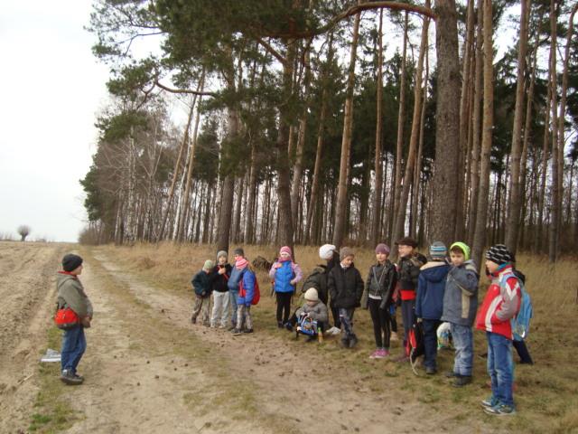 6 marca 2014r. uczniowie klasy II szkoły podstawowej wybrali się na wycieczkę do pobliskiego lasu. W czasie wędrówki dzieci odnajdywały oznaki