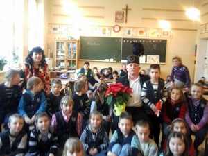 Jak co roku naszą szkołę odwiedził św. Mikołaj, któremu pomagały dwie dziewczyny z gimnazjum.